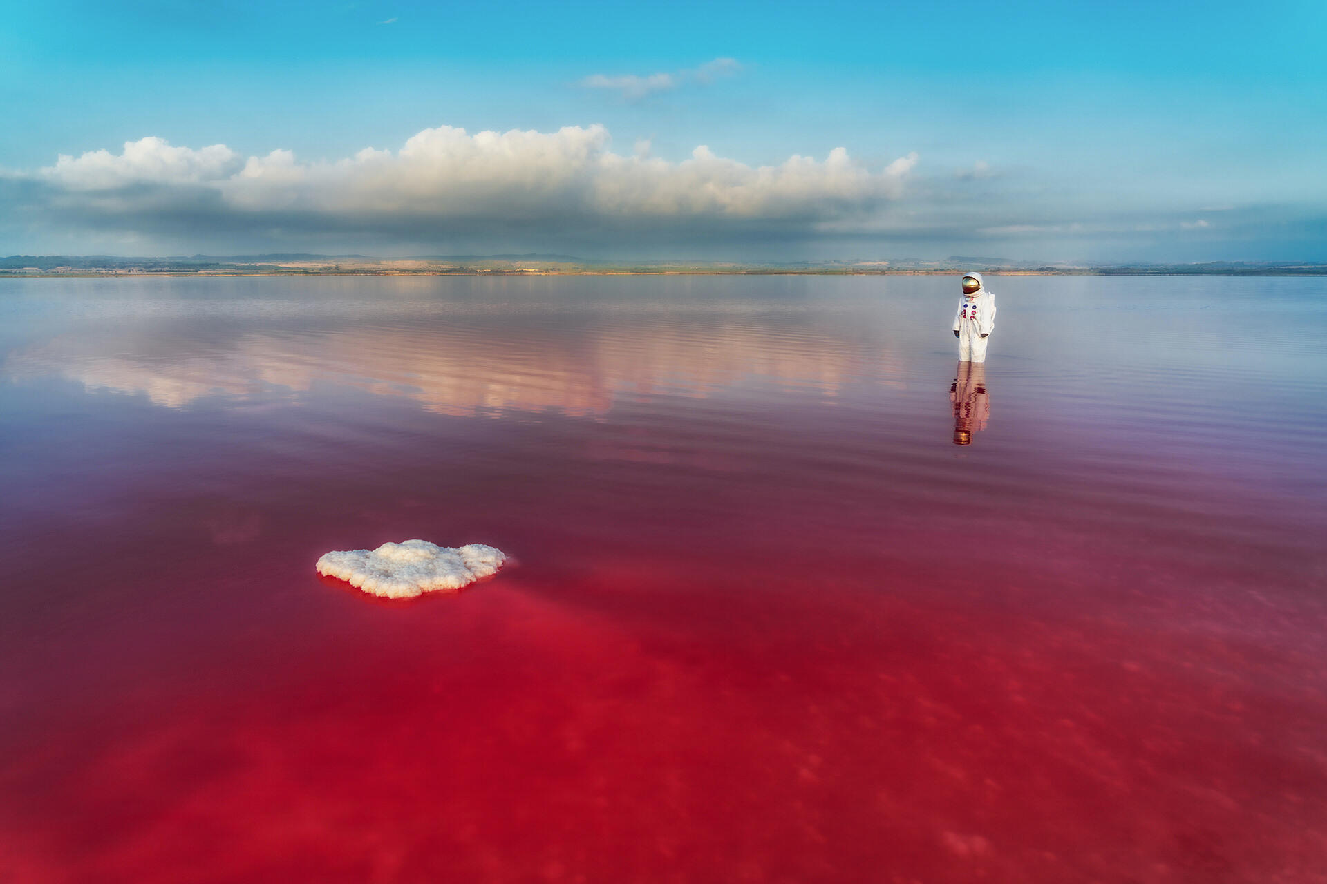 La Terre, dans ses décors les plus étranges, les plus énigmatiques, ressemble parfois à une autre planète.J’ai voulu explorer cette opportunité visuelle, cette illusion troublante, en y plaçant une figure symbolique : le Terronaute, personnage sans visage et sans identité mais dont la combinaision spatiale évoque les grandes découvertes.